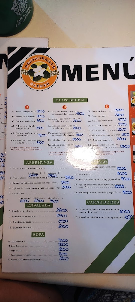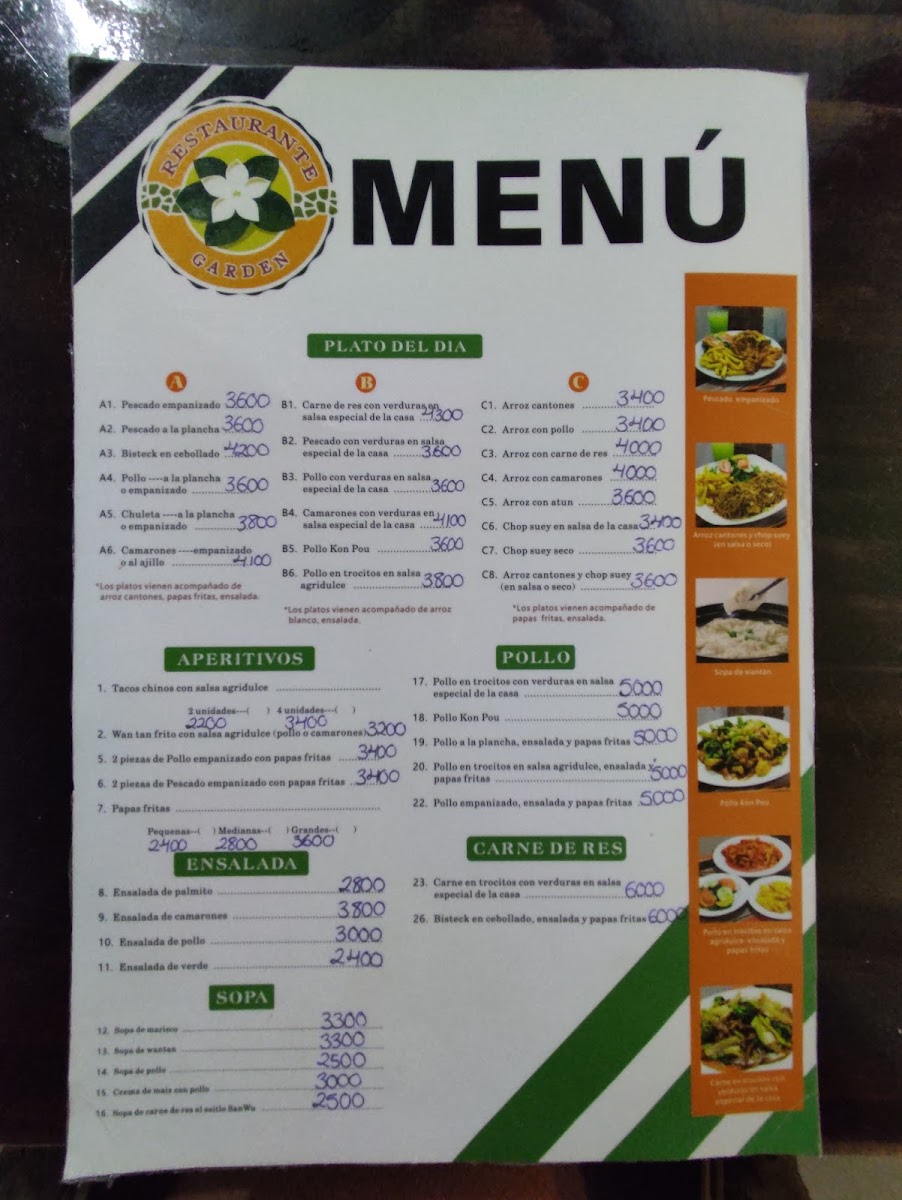 Restaurante Garden offers a diverse and flavorful menu that caters to a variety of tastes, with dishes ranging from savory meats to vegetarian options. The restaurant’s Arroces en Salsa section features a range of rice dishes, including Arroz En Salsa Con Verduras and Arroz En Salsa Con Pollo, with prices varying depending on the choice. For those who enjoy seafood, Arroz En Salsa Con Camarones is a must-try, blending tender shrimp with rice in a rich sauce.