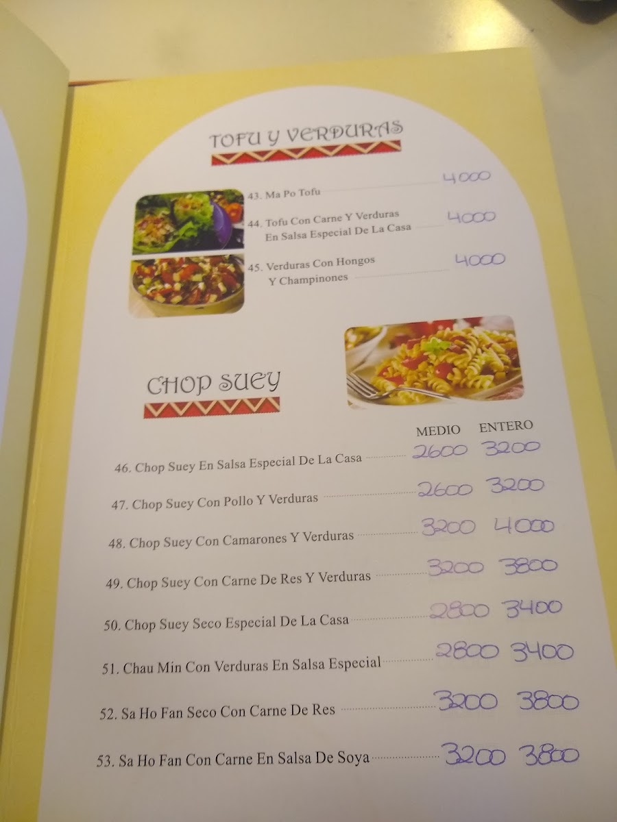 Vegetarians are well catered to, with choices like Verduras En Salsa De Ostión (vegetables in oyster sauce) and Chop Suey Seco Vegetariano (dry vegetarian chop suey), ensuring there's something for everyone. The Aperitivos (appetizers) section features crisp snacks such as Pescado Empanizado Con Papa (breaded fish with potatoes) and Wantán Frito (fried wontons), perfect for sharing before diving into a larger meal.