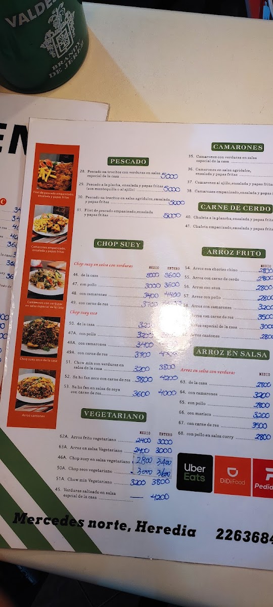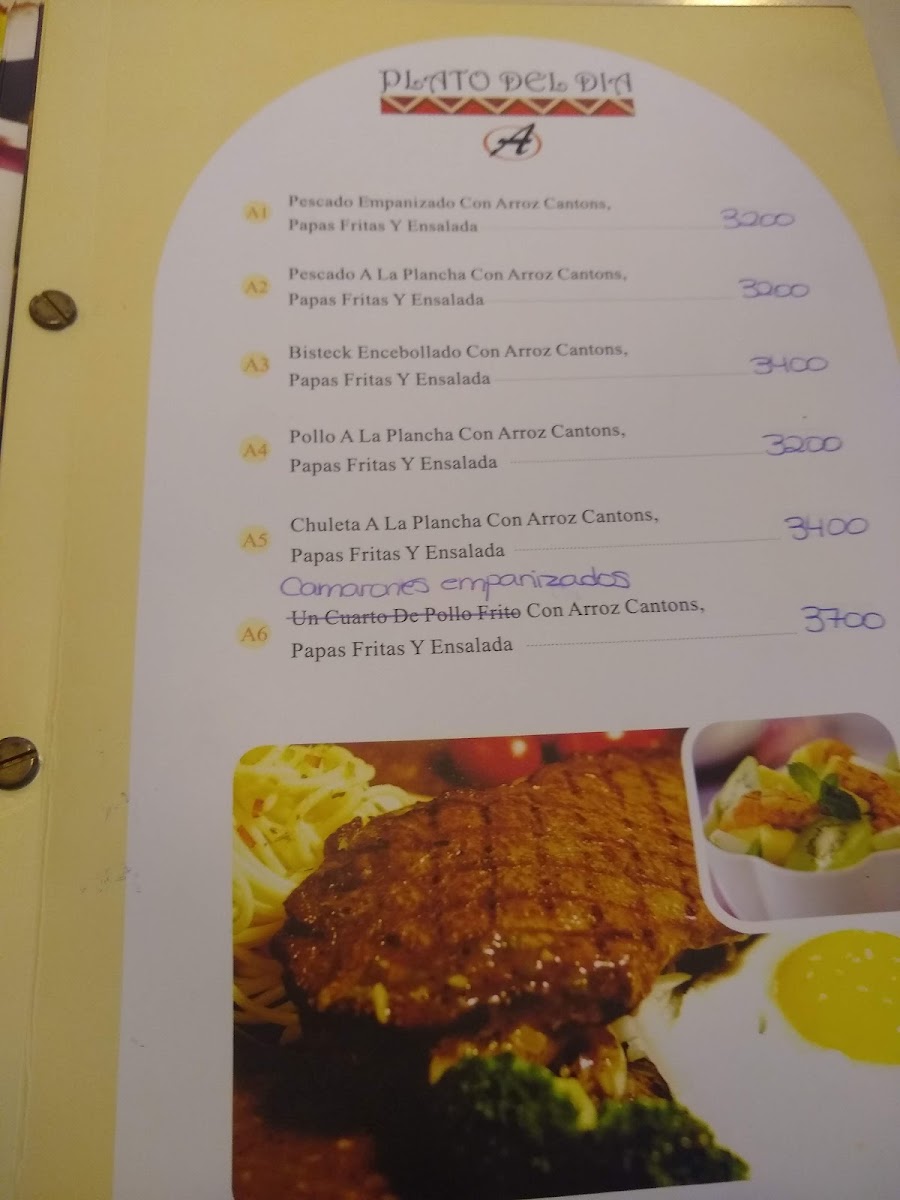 Moving on to Platos del Día (daily specials), the Camarones Con Arroz Cantones (shrimp with Cantonese rice) and Bistec Encebollado Con Arroz Cantones (steak with Cantonese rice) are crowd favorites, offering a balance of protein and rice with rich, savory sauces. There are also delicious options like Chop Suey En Salsa De La Casa (chop suey in the house sauce) for a more unique twist.
